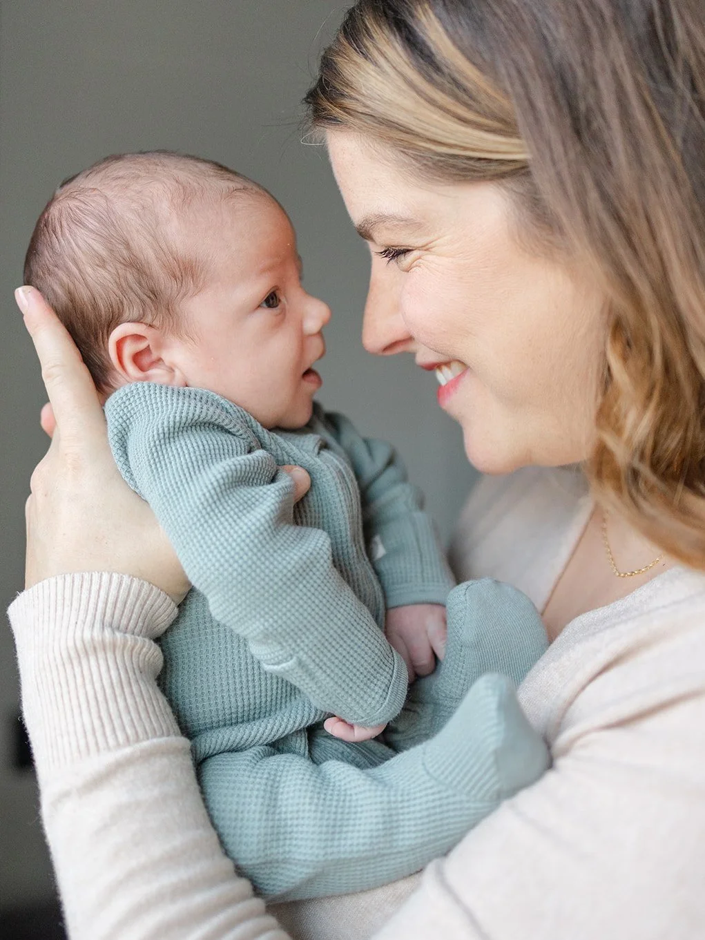 If you have a minute to tuck away a coffee mug or a few toys, great—but don’t worry about making everything spotless. This is real life, and I’m not here to photograph perfection. If i see something in the way, I’ll move it for you. A slightly warmer thermostat helps keep your baby cozy, and some music you love can help set a calm, relaxed tone. That’s really all you need. I’ll take it from there and make sure things stay easy and low-stress.